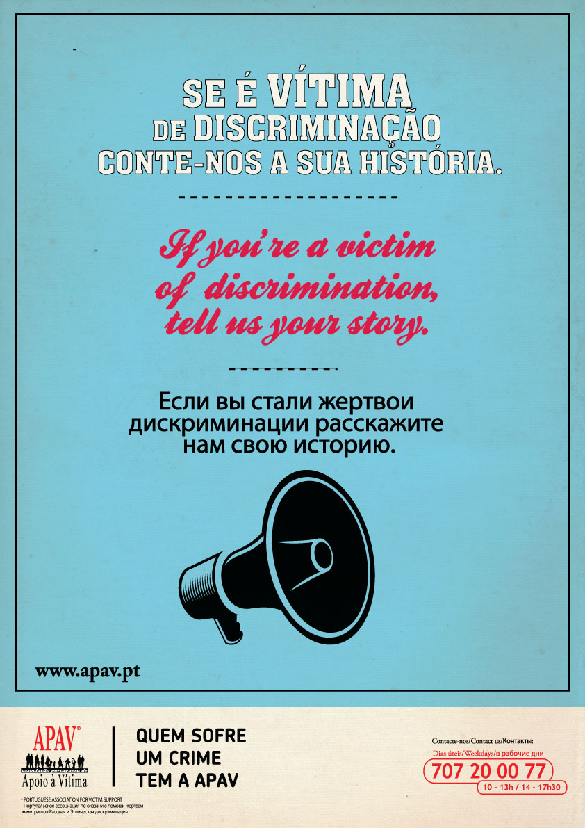 A APAV trabalha para que todas as pessoas, independentemente da sua origem racial, nacionalidade ou etnia sejam tratadas de forma igualitária e espera que neste dia todos façam uma reflexão em prol da igualdade de direitos e de tratamento das minorias em Portugal.