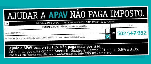 Para contribuir basta colocar uma cruz no Anexo H, Quadro 9, campo 901 e doar 0,5% do valor do seu IRS à APAV, indicando o NIF 502.547.952.