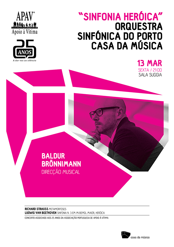 No âmbito da celebração do 25º aniversário da APAV, a Orquestra Sinfónica do Porto Casa da Música apresenta a “Sinfonia Heróica” de Beethoven. O concerto terá lugar no dia 13 de Março, pelas 21h00 na Casa da Música, no Porto.