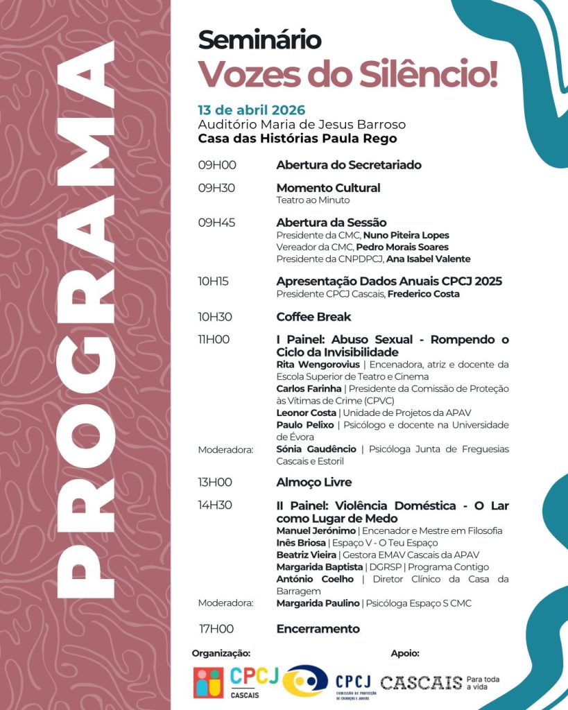 A APAV vai estar presente no seminário “Vozes do Silêncio” – Prevenção e Intervenção para o Abuso Sexual e Violência Doméstica em Crianças e Jovens, promovido pela CPCJ de Cascais, com o apoio do Município de Cascais.