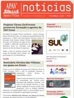 Aqui está a 18ª edição do boletim APAV_notícias. Esta newsletter condensa informação sobre as mais recentes actividades da APAV: a formação que o Projecto Títono (In)Formar promoveu a agentes da PSP Porto; o Seminário “Direitos das Vítimas: um passo em frente”, que será realizado nos dias 27 e 28 de Setembro; o destaque que a Euronews deu ao apoio às vítimas de crime na Europa; e a nova Loja APAV online. O projecto em destaque nesta edição é o Projecto SUL 2.