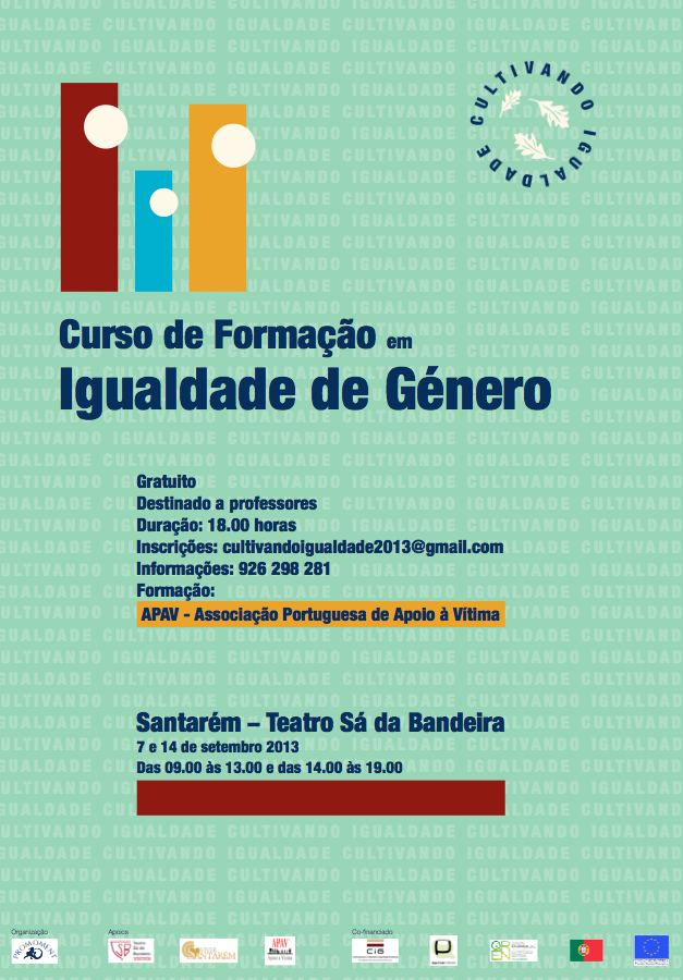 Pelo exposto, no âmbito do Projeto Cultivando Igualdade, promovido pela PROMOMENT, enquadrado no Eixo 7 do POPH, tipologia 9.7.2. Planos para a Igualdade, a APAV como Entidade Formadora privilegiada irá assegurar a realização do primeiro Curso de Formação em Igualdade de Género, em Santarém (ver Cartaz), possibilitando aos/às professores/as a aquisição de competências pedagógicas para a transferência dos princípios da não violência e da igualdade de género em sala de aula e a oportunidade de referirem sobre os valores e atitudes potenciadores da Igualdade de Género adotando-os também à sua vida pessoal.
