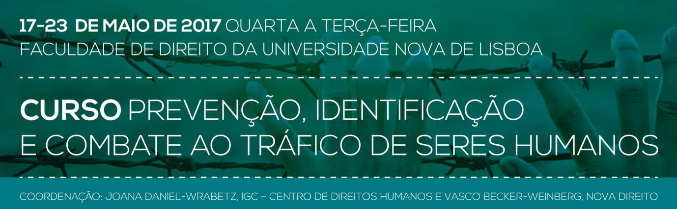 Entre os dias 17 a 23 Maio de 2017 realiza-se o Curso sobre Prevenção, Identificação e Combate ao Tráfico de Seres Humanos. O curso terá lugar na Faculdade de Direito da Universidade Nova de Lisboa.