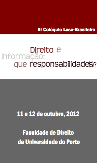 Este encontro científico terá lugar nos dias 11 e 12 de Outubro de 2012, na Universidade do Porto. Este colóquio irá congregar especialistas portugueses e brasileiros das áreas do Direito e da Ciência da Informação, procurando estreitar as relações académicas científicas e profissionais entre as duas áreas, discutindo problemáticas de interesse mútuo e que possam ser vistas numa perspetiva interdisciplinar.