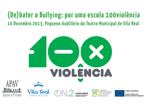 A APAV, através do Gabinete de Apoio à Vítima de Vila Real, promove no próximo dia 10 de Dezembro a palestra “(De)bater o Bullying: por uma escola 100violência”. Promovida no âmbito do Projecto 100Violência, esta palestra terá lugar no Teatro Municipal de Vila Real (Pequeno Auditório).