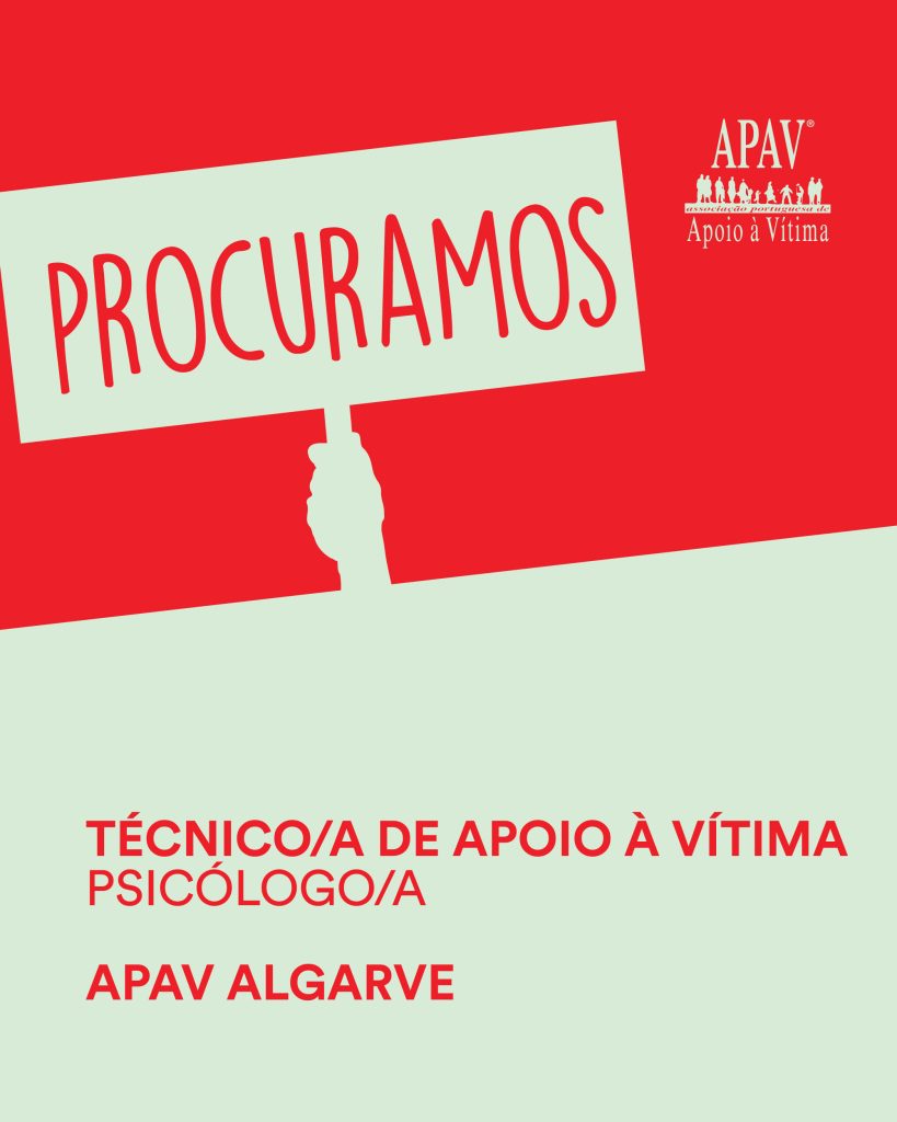 A Associação Portuguesa de Apoio à Vítima (APAV) encontra-se a recrutar um/a Técnico/a de Apoio à Vítima Psicólogo/a, para a região do Algarve.