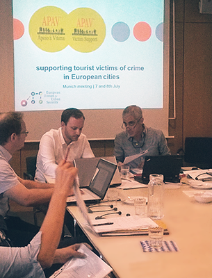 Realizou-se em Munique, nos dias 7 e 8 de Julho, uma reunião do Projeto Safer Touristic Cities promovido pelo European Forum for Urban Safety (EFUS). O EFUS é um fórum europeu que reúne 250 autoridades locais e regionais de 16 diferentes países europeus. Este projeto conta com a parceria da APAV, como organização especialista em apoio à vítima relativamente aos turistas vítimas de crime, e como cidades parceiras: Alba e Roma (Itália), Munique (Alemanha), Saint Denis (França), Brasov (Roménia) e Barcelona (Espanha). O projeto tem como ideia-chave a segurança como factor de extrema importância no sucesso continuado de um destino turístico.