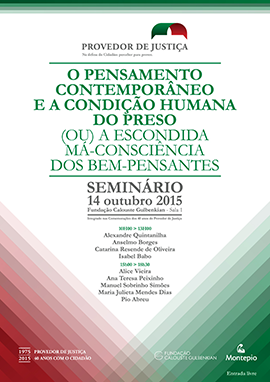 No âmbito das comemorações dos 40 anos do Provedor de Justiça (1975-2015), este órgão do Estado irá promover no próximo dia 14 de outubro um Seminário na Fundação Calouste Gulbenkian. Este evento tem por tema “O pensamento contemporâneo e a condição do preso” e tem entrada livre.